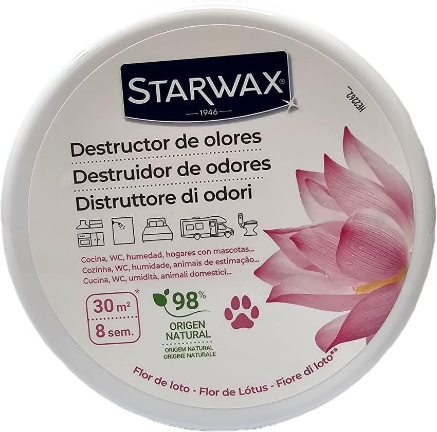 El Destructor de Olores Starwax Flor de Loto elimina eficazmente los malos olores del hogar dejando un ambiente fresco y limpio de forma natural. Formulado con 98% de ingredientes de origen natural, neutraliza los olores sin enmascararlos, ofreciendo una fragancia suave y relajante inspirada en la flor de loto.